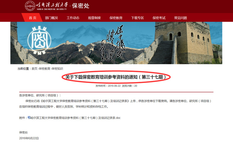 本次材料为保密处发布的第三十七期培训材料,主要为保密知识测验,各课题组可参照组织相关人员进行培训,本次培训计2学时。