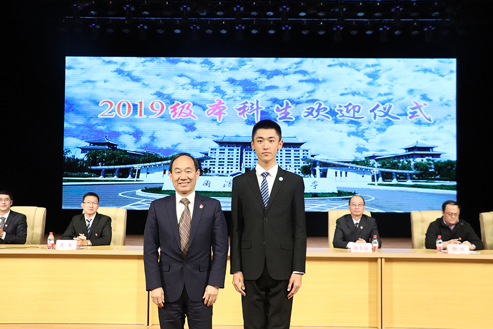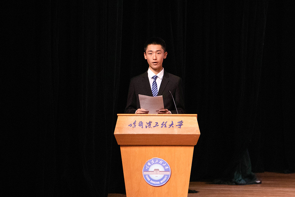 2019级本科生刘震代表全体新生进行发言,表达入学的激动心情和对未来大学生活的美好展望,并同全体新生做出庄严承诺。