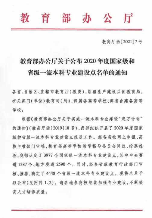 近日,教育部办公厅下发了《关于公布2020年度国家级和省级一流本科专业建设点名单的通知》(教高厅函【20217号),澳门电子pg游戏官网软件工程专业获批国家级一流专业建设点信息安全专业获批省级一流专业建设点。我院的计算机科学与技术专业于2019年获批国家级一流专业建设点,目前我院在办的三个专业全部入选“双万计划”一流专业建设行列。
