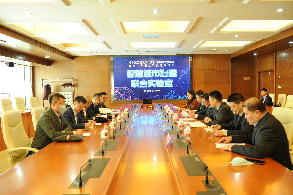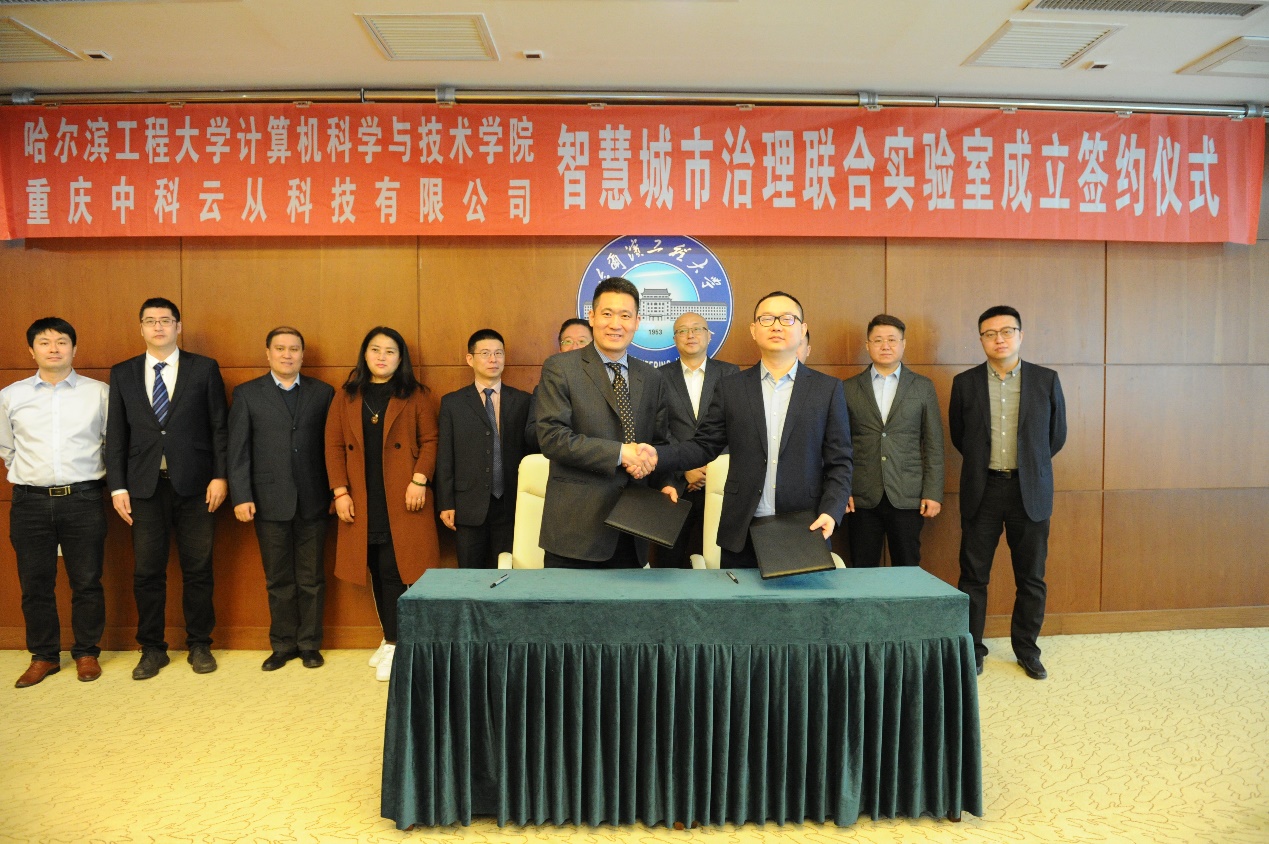 2021年4月14日,重庆中科云从科技有限公司与澳门电子pg游戏官网共同参与的“智慧城市治理联合实验室”成立签约仪式于校启航活动中心贵宾会议室举行。云从科技集团智慧治理BG总经理李夏风、云从科技集团智慧治理重大项目部总经理代亮、云从科技集团智慧治理黑龙江分公司总经理王海亮、云从科技集团智慧治理重大项目部AIOT高级经理刘勇,澳门电子pg游戏官网副校长韩端峰、计算机学院院长蔡成涛、副书记刘正、副院长冯光升、王巍、董宇欣及教师代表出席仪式,仪式由王巍主持。