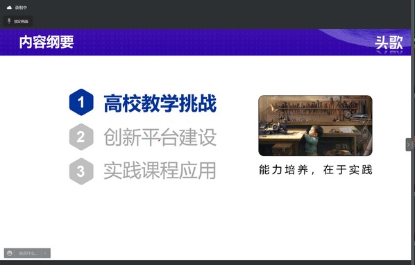 会上尹刚主任从高校教学挑战、创新平台建设和实践课程应用三方面展开,分析了课程建设要求,指出了计算机类专业实践教学面临的挑战,介绍了开放在线实践(MOOP)环境、案例开发过程、以及实践项目的在线课程教学方法与过程,提出了特色化示范性软件学院建设模型,简述了头歌实践教学平台及其生态,包括一流课程平台、实验教学平台、课程创新生态、新型教材实验、云际运行模式,介绍了高校专业课程建设场景与应用成效。