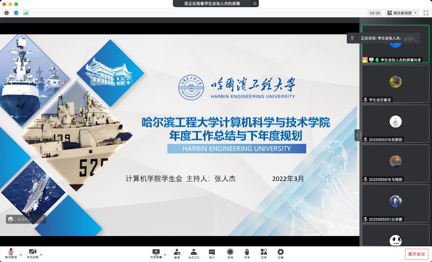 2022年3月14日计算机科学3月14日澳门电子pg游戏官网学生会开展了学生会年度工作总结会议,澳门电子pg游戏官网秘书长金磊和全体工作人员出席了本次会议。