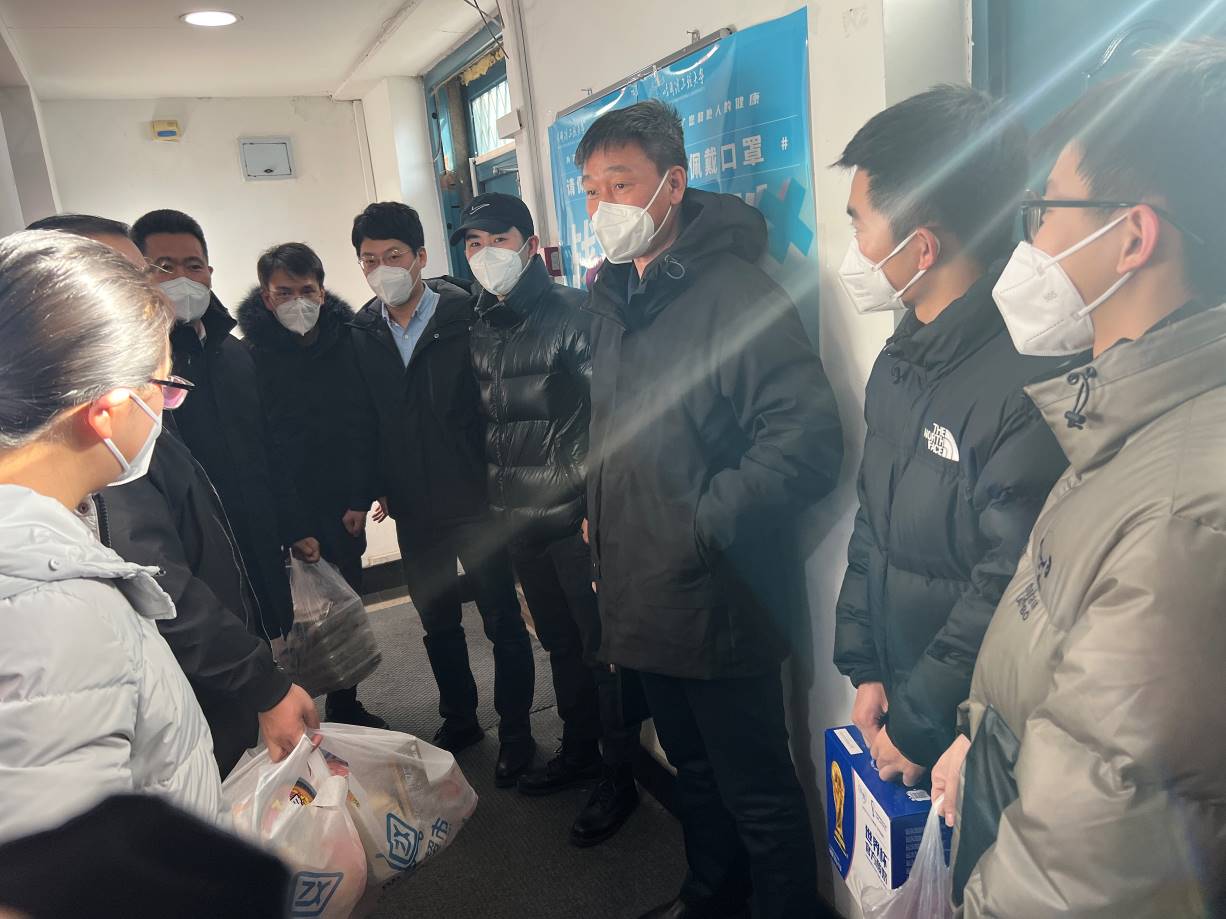 2022年12月15日11:30,党委书记刘冬、院长蔡成涛带领学院综合办公室负责人员,前往澳门电子pg游戏官网34A教师公寓进行走访慰问疫情风控思政教师,贴心的为被风控教师带去了午餐、水果、牛奶、防疫口罩、体温计等物资,同风控教师进行了亲切的交谈,从实际出发了解被风控教师生活、工作情况。刘书记深切表达了对被风控教师的关怀,叮嘱大家一定要做好个人防护、注意身体健康。
