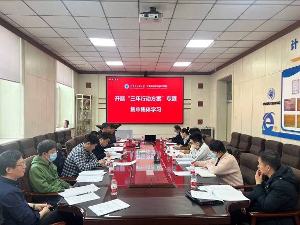 2023年3月8日14时,澳门电子pg游戏官网就深入贯彻落实学校五个“三年行动方案”相关文件内容,开展集中集体学习交流。学院领导班子成员、基层学术组织负责人及党支部书记参加会议。