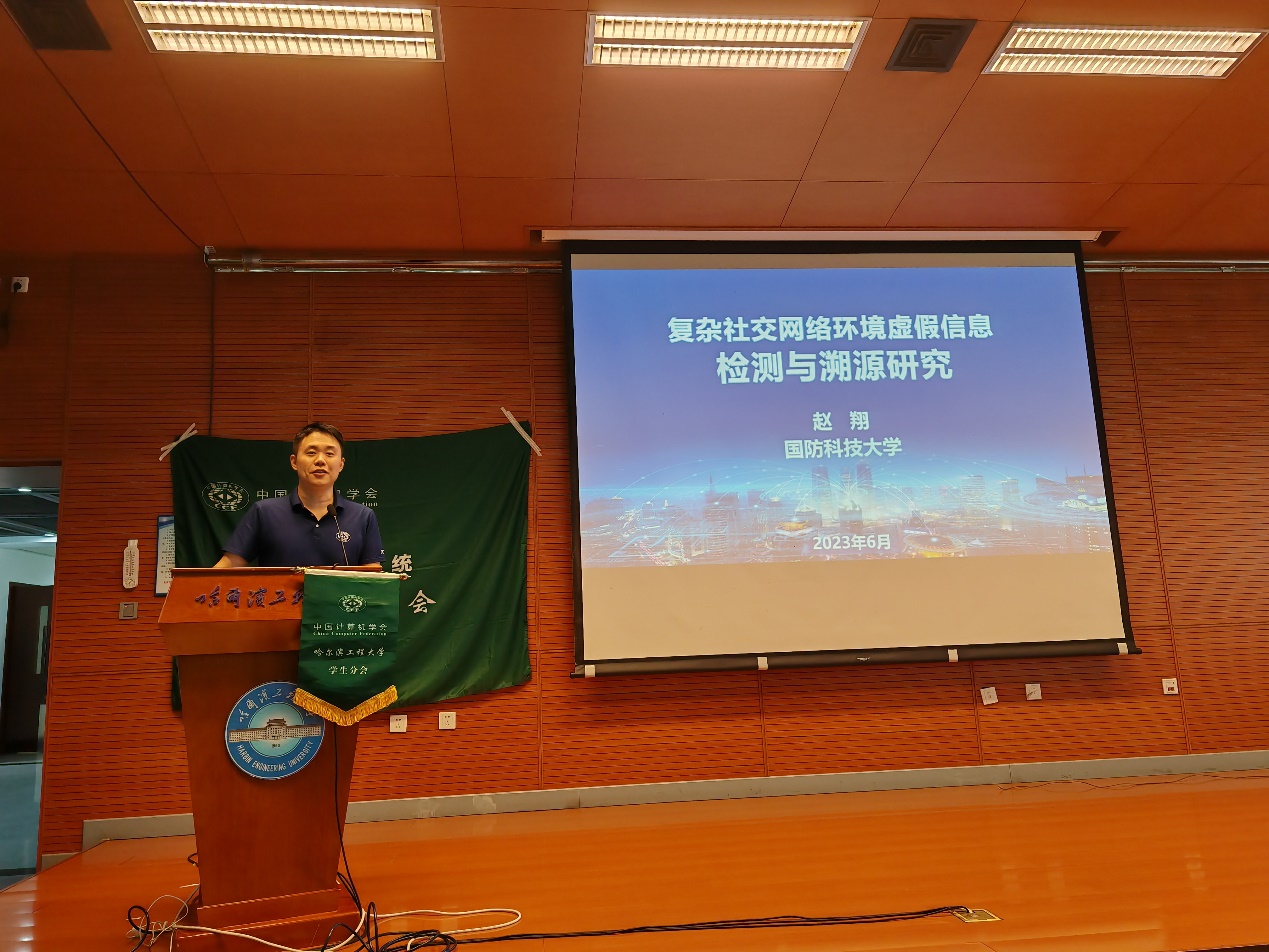 赵翔教授做了题为“复杂社交网络下虚假信息检测与溯源研究”的学术报告。随着社交网络用户的急剧增长,互联网在成为大家获取信息的重要渠道的同时,也成为了谣言等虚假信息滋生的温床,这给个人和社会带来了深远的影响和潜在的威胁。报告结合团队承担的相关科研项目,从概念背景、研究思路以及研究进展等方面进行了深入介绍,提出了面对网络安全问题,仍然需要大量相关研究工作,切实保障网络空间的内容安全。