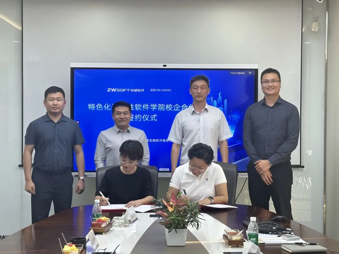 为积极落实教育部、工业和信息化部特色化示范性软件学院建设工作要求,近日,澳门电子pg游戏官网国家特色化示范性软件学院(以下简称“特软学院”)与广州中望龙腾软件股份有限公司(以下简称“中望软件”)成功举行了校企合作交流会暨国产工业软件信创人才培养基地签约仪式。中望软件副总裁兼教育BG总经理王长民、副总经理李卫卫,、高教市场总监赵宏健、高教市场经理蔡廉勇,特软学院党委书记刘冬、副院长吴艳霞出席本次会议。