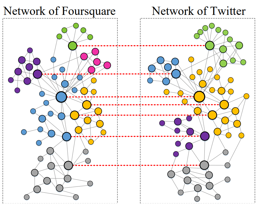 社交网络用户的去匿名化技术,是一种针对用户个人隐私技术的反问题研究。今年我院发表的成果旨在研究多社交网络场景下的去匿名化方法,聚焦社交网络中的隐私泄露问题。针对社交网络语义差异对于锚链接预测任务带来的影响,该论文提出了基于联邦对抗学习的锚链接预测模型。在该篇论文中,作者提出了社交网络语义对于深度特征空间的影响,以及不同社交网络语义差异对于跨网络任务的影响,即不同社交网络的语义差异进一步加剧了单一网络中相邻节点相似性对于跨网络任务的制约。针对上述问题,该论文引入联邦学习思想,构建联邦对抗学习框架。通过联邦对抗学习框架关联原本独立的不同社交网络的深度特征构建过程,以此消除不同社交网络语义差异对于跨网络任务的影响。在单一网络的特征构建过程中,该论文通过节点的网络结构角色之间的参考关系,构建相邻节点在深度特征空间的差异,来进一步提升跨网络任务的性能。
