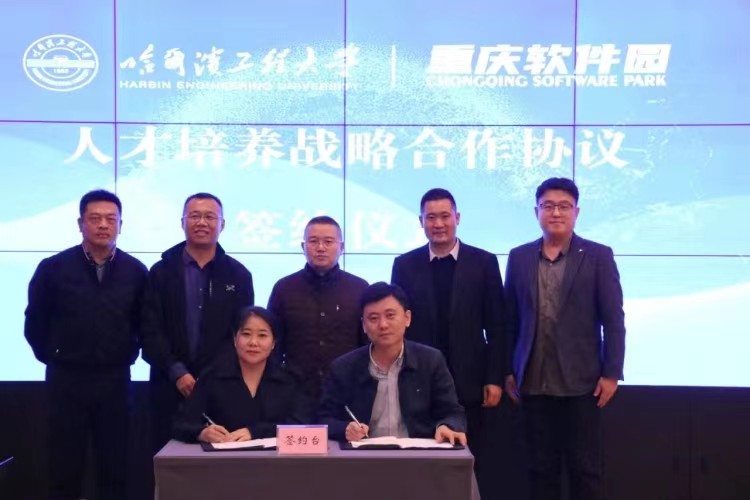 重庆软件园总裁孙丕宏对哈工程蔡成涛院长一行的到访表示热烈欢迎,并介绍了软件园的总体情况。蔡成涛院长对学校和学院情况进行了介绍。在座谈会上,双方就推进合作交流平台共建、人才培养、产教融合等方面深入沟通交流。期待双方能够进一步开展深度、务实合作,实现校企之间技术、人才与物质资源共享,形成教育和产业统筹融合、良性互动的发展格局。会上举行了人才培养战略合作协议签约暨“澳门电子pg游戏官网 实习实践教学基地”授牌仪式。重庆经开区管委会副主任肖鼎光表示此次合作是促进双方资源共享、优势互补、推动科技创新的有力举措,为重庆软件园软信产业快速发展提供更好人才支撑。