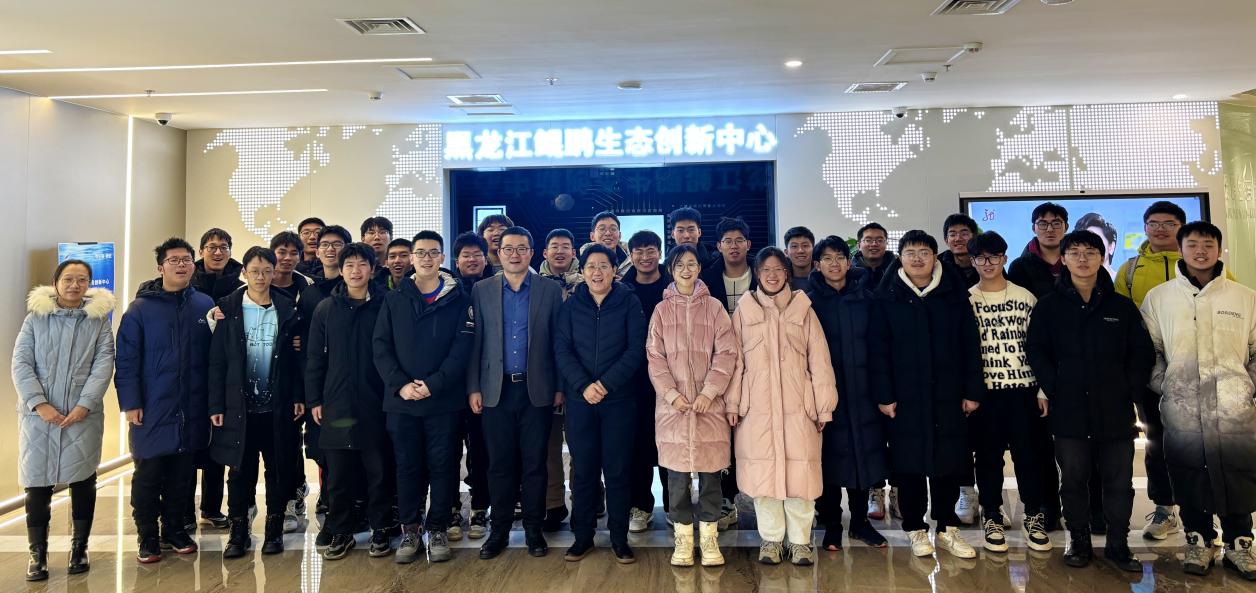 2024年1月12日,澳门电子pg游戏官网2023级基础拔尖班(本博贯通)假期研学参观活动圆满举行。计算机学院副院长吴艳霞、院长助理李熔盛、计算机科学教学与研究中心教师孙宝丹带队基础拔尖班(本博贯通)全体同学前往航空工业哈尔滨飞机工业集团有限责任公司(以下简称哈飞)、黑龙江省鲲鹏生态创新中心(以下简称创新中心)参观学习。