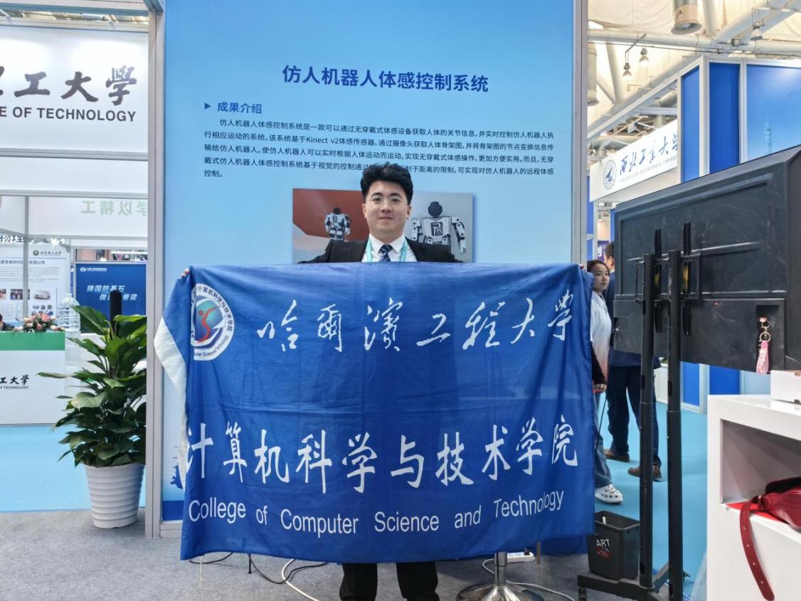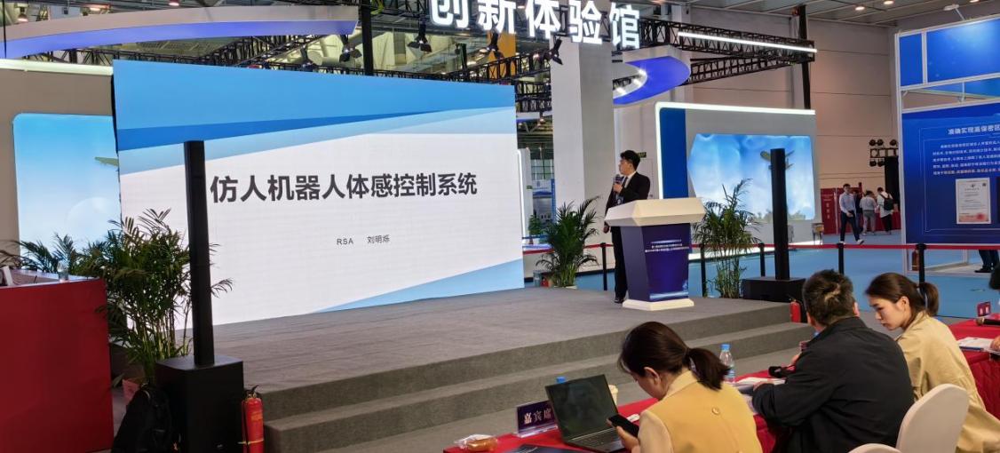 为贯彻落实党的二十大“提高科技成果转化和产业化水平”精神,推动先进技术成果转化应用,助力国防科技工业和地方经济社会高质量发展,第二届先进技术成果转化大会(以下简称大会)于2024年4月8日至4月11日在苏州国际博览中心举办。参加大会的单位包括各军工集团公司、中国工程物理研究院、工业和信息化部所属高校、国家国防科工局共建高校以及有关成果供给单位。澳门电子pg游戏官网机器人仿真创新实验室(以下简称实验室)受邀参加了此次大会,研究生刘明烁代表实验室赴苏州参加展览和路演,在澳门电子pg游戏官网展区展示仿人机器人体感控制系统。