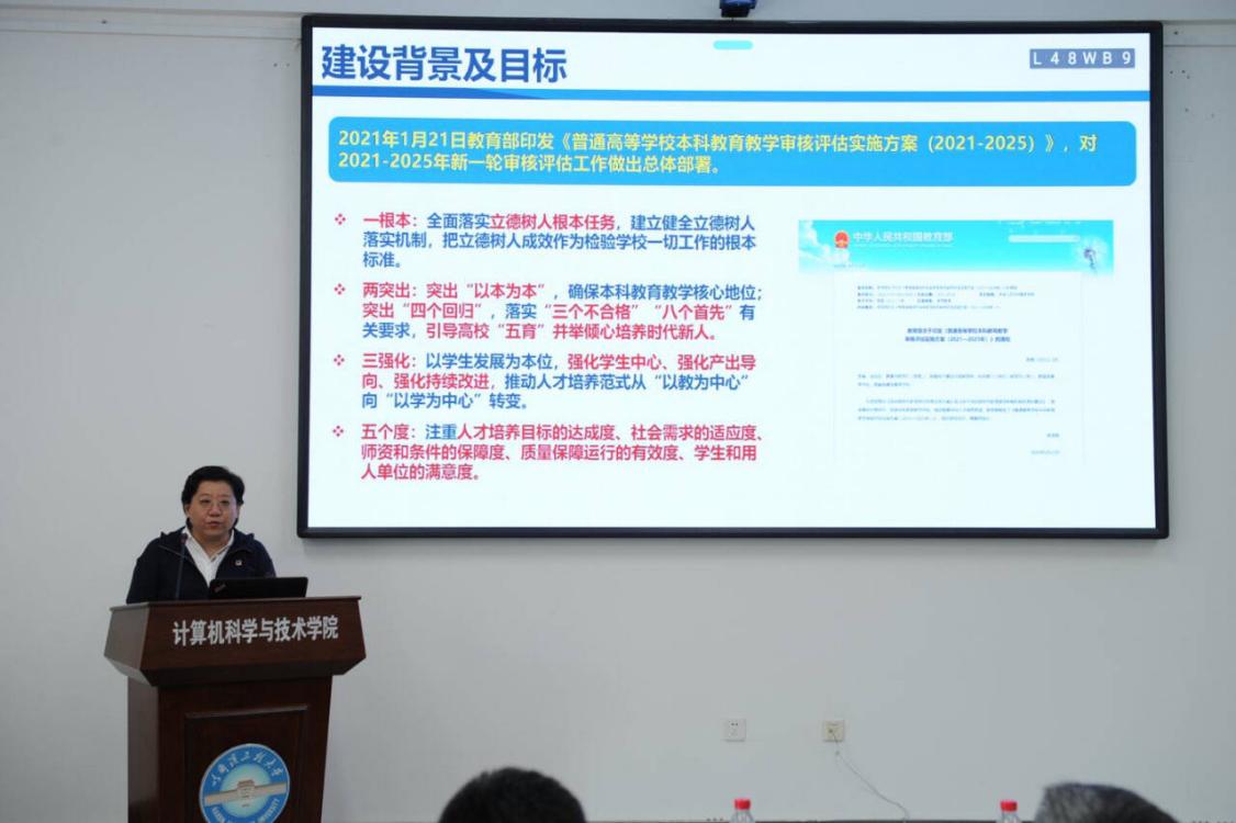 吴艳霞强调,新一轮审核评估的三大核心理念是要以学生为中心,促进学生全面发展和个性化发展;以教育产出为导向,注重教育质量和成果的实现;倡导持续改进,不断优化教育过程和结果。全体教师要以高度的责任感和使命感投入到审核评估具体工作中。