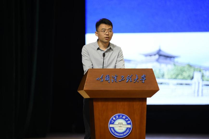 唐滨教授作为教师代表发言,他表示在课程学习、科研创新、工程实践是求真的底色,也是投身实干的战场,希望同学们在学习实践中夯实专业基础、锤炼意志品格,在充实而精彩的大学时光里成长为有本领、有担当、有情怀的哈工程计算机人。
