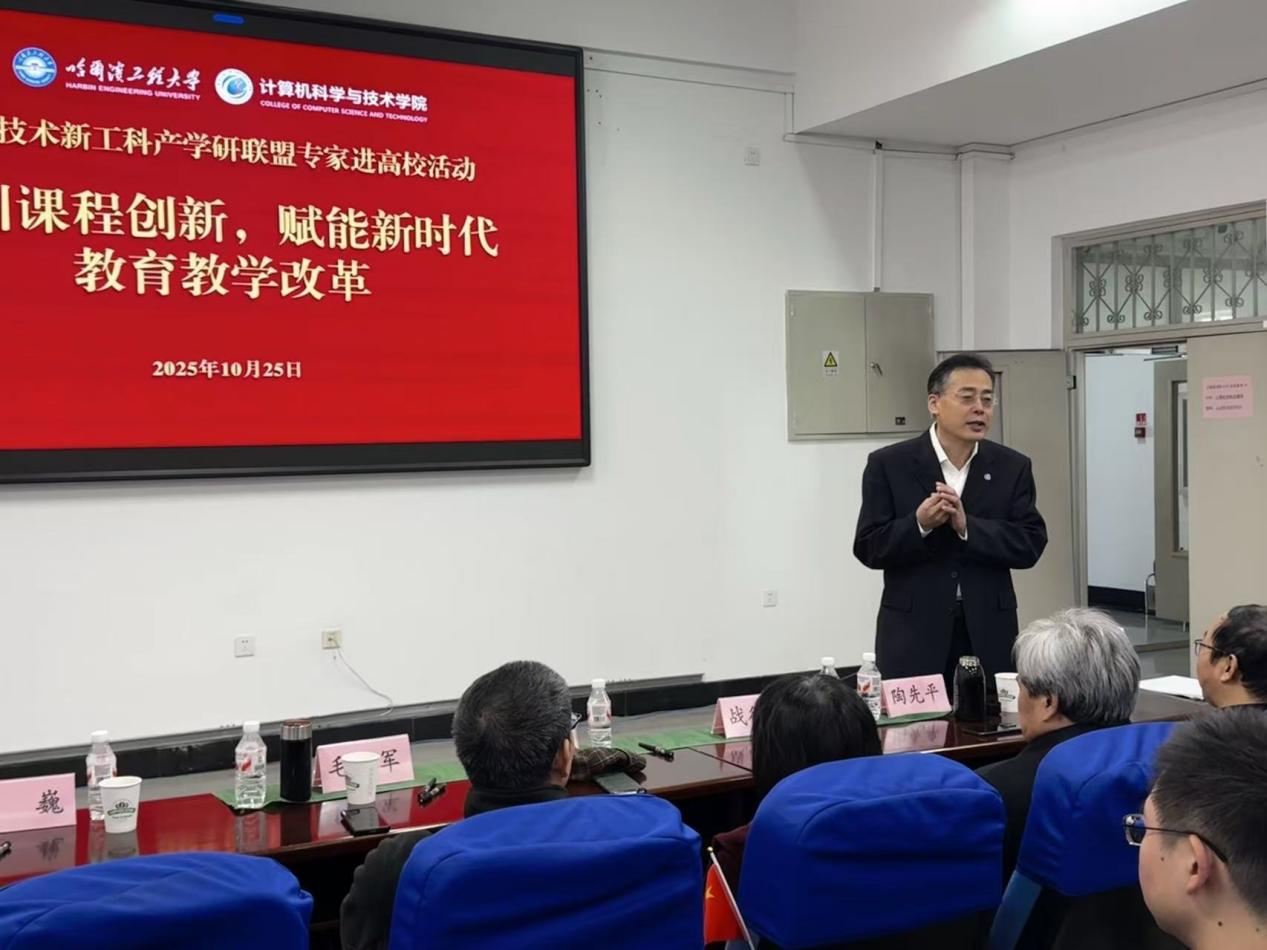 澳门电子pg游戏官网本科生院副院长刘海波教授代表学校致辞,他对各位联盟专家来到学校分享课程建设以及教育教学数智化改革宝贵经验表示了感谢,并强调了本次活动的举办对于哈尔滨计算机学院乃至全校的新工科建设的重要性。